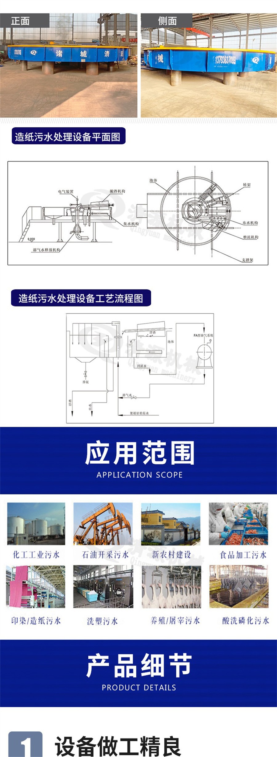 此外,我公司不僅生產(chǎn)造紙污水處理設(shè)備,還生產(chǎn)農(nóng)村污水處理設(shè)備、氣浮機(jī)、污泥壓濾機(jī)、造紙?jiān)O(shè)備等其他環(huán)保設(shè)備。