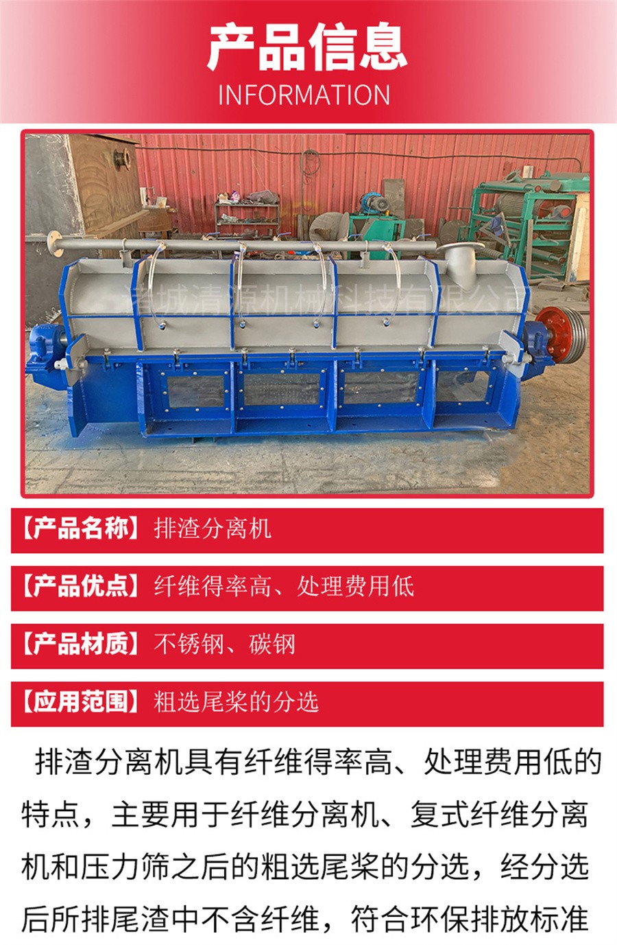 諸城清源機(jī)械生產(chǎn)的排渣分離機(jī)包括一焊接的組裝主體,主體支撐著篩板、轉(zhuǎn)子、收集槽、渣滓排放槽和支架,它是水平安裝的。