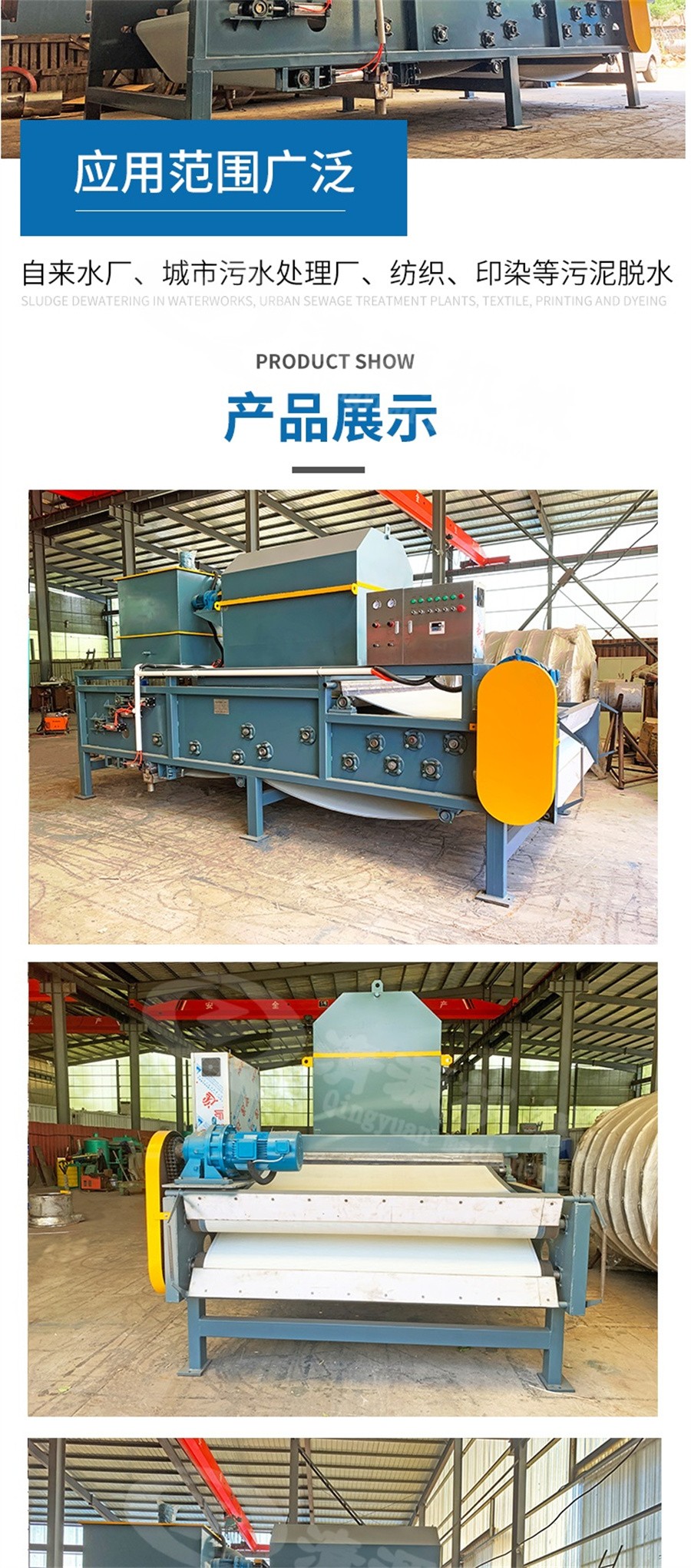 此外,我公司還生產(chǎn)帶式污泥脫水機(jī)、氣浮機(jī)、固液分離設(shè)備、污泥壓濾機(jī)、造紙機(jī)械設(shè)備等其他環(huán)保設(shè)備。